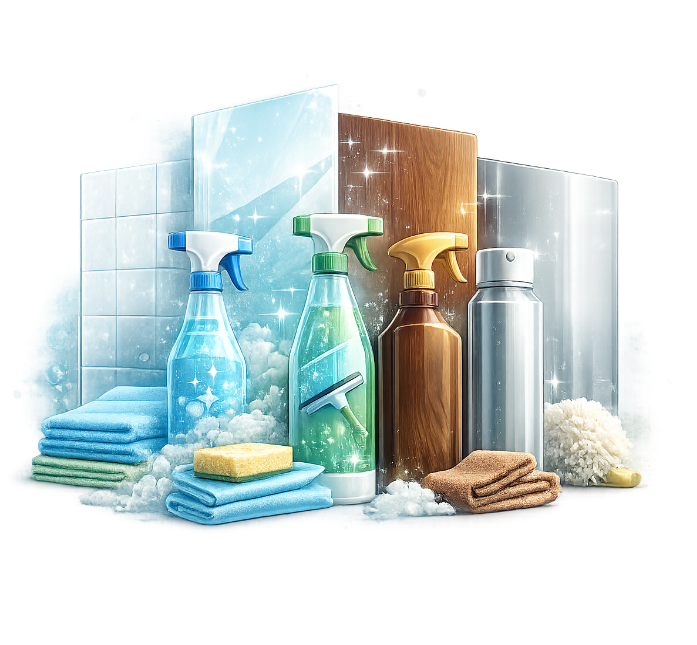 Specjalistyczne środki do czyszczenia i pielęgnacji szkła, mebli, stali nierdzewnej oraz innych wymagających powierzchni.
