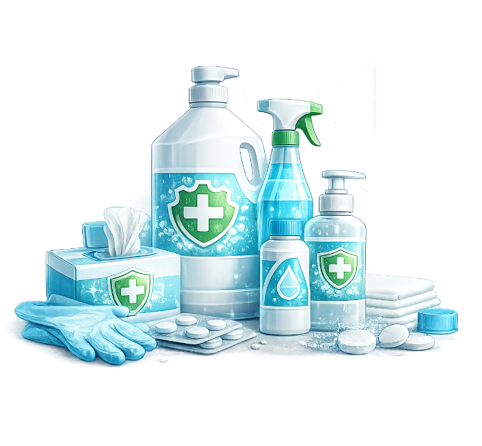 Skuteczna dezynfekcja powierzchni i wyposażenia, zapewniająca higienę i bezpieczeństwo użytkowania.