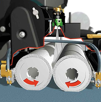 • Oddziel więcej zabrudzeń zarówno z przodu, jak i z tyłu włókien dywanu w jednym przejściu dzięki silnemu podciśnieniu, podwójnemu agitowaniu i przeciwbieżnie obracającym się wałkom, które unoszą runo dywanu.