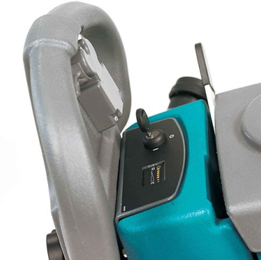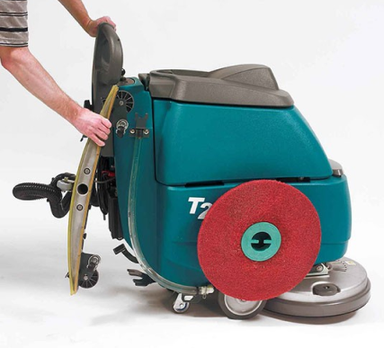 Łatwo przechowuj i transportuj automat szorujący T2 Walk-Behind Compact dzięki uchwytom zaprojektowanym przez Tennant na ssawkę i pad driver.